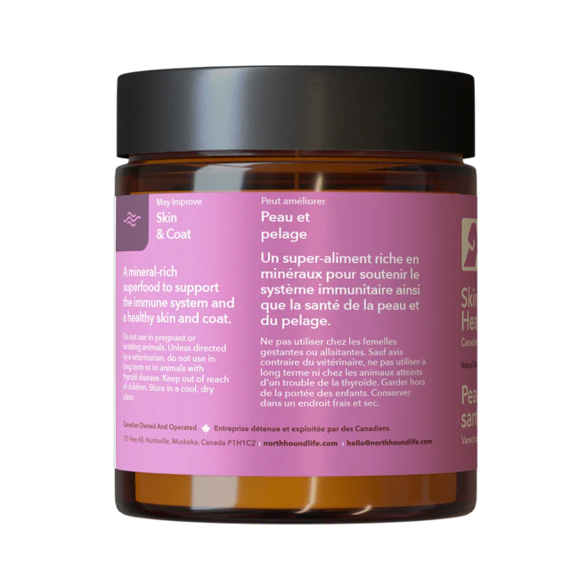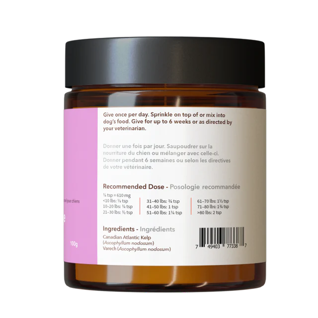 Skin & Coat Health+ - Atlantic Canada Kelp (Ascophyllum nodosum) is a 100% natural product, rich in nutrients, and harvested from frigid rocky Canadian shores. Our kelp is gently dried to ensure the highest quality ingredients. With 46 minerals, 16 amino acids, and vitamins, it's the perfect food to add to your dog's diet. Organic Atlantic Kelp is a green, nutritious food that provides folate, potassium, iron, iodine, fiber, and many other essential nutrients.
